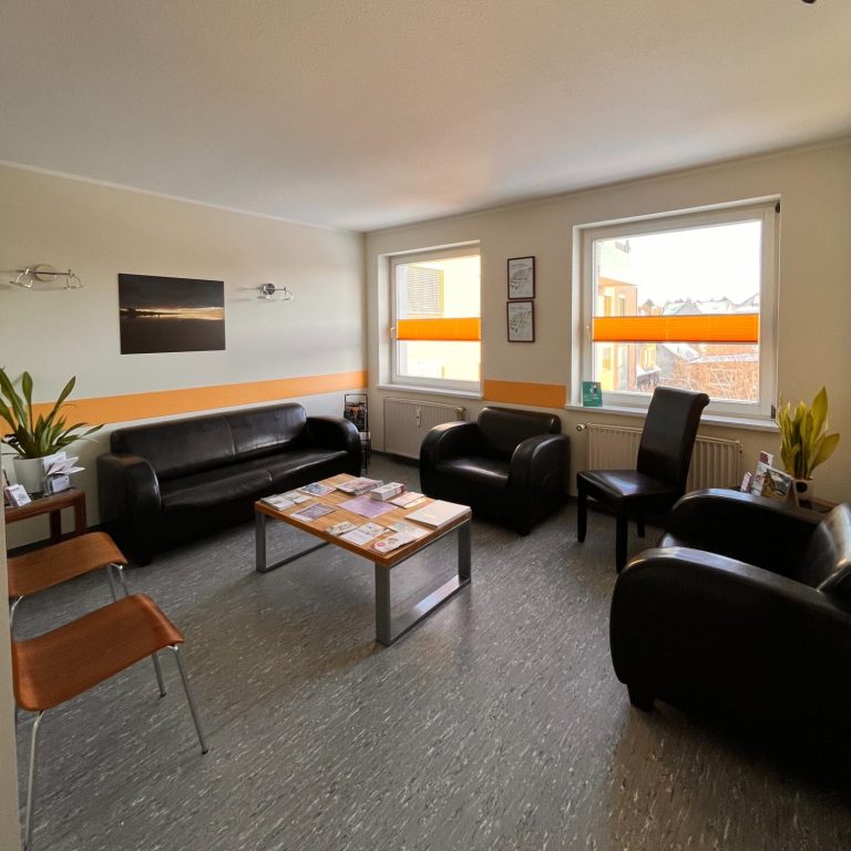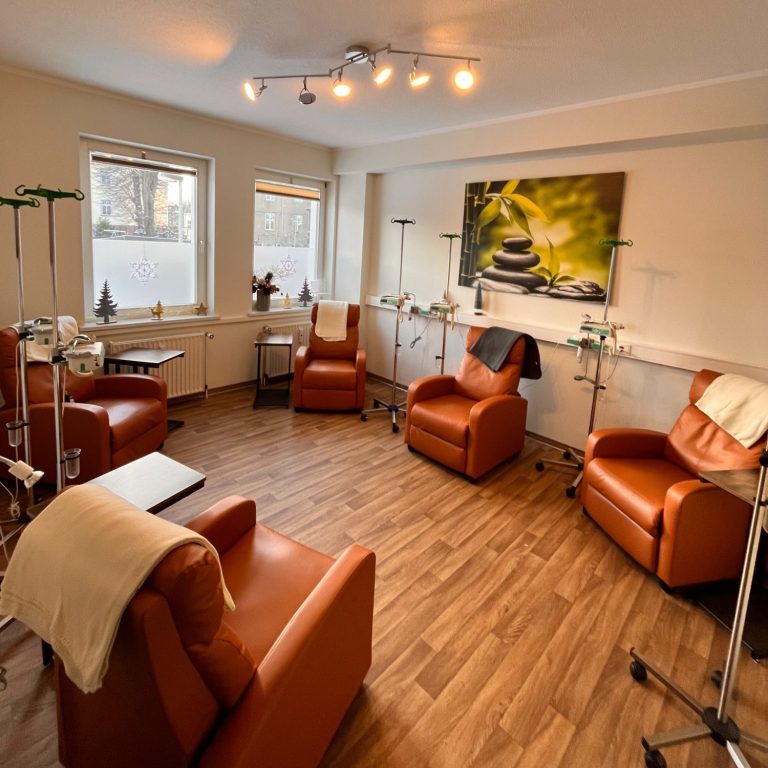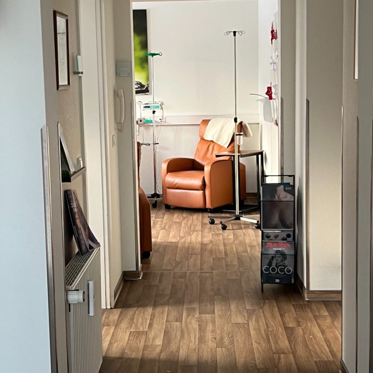 Die Praxisräume liegen im 2. Obergeschoss und sind barrierefrei per Fahrstuhl erreichbar. Der Chemotherapiebereich befindet sich separat im Erdgeschoss mit eigenem, ebenfalls barrierefreiem Eingang.